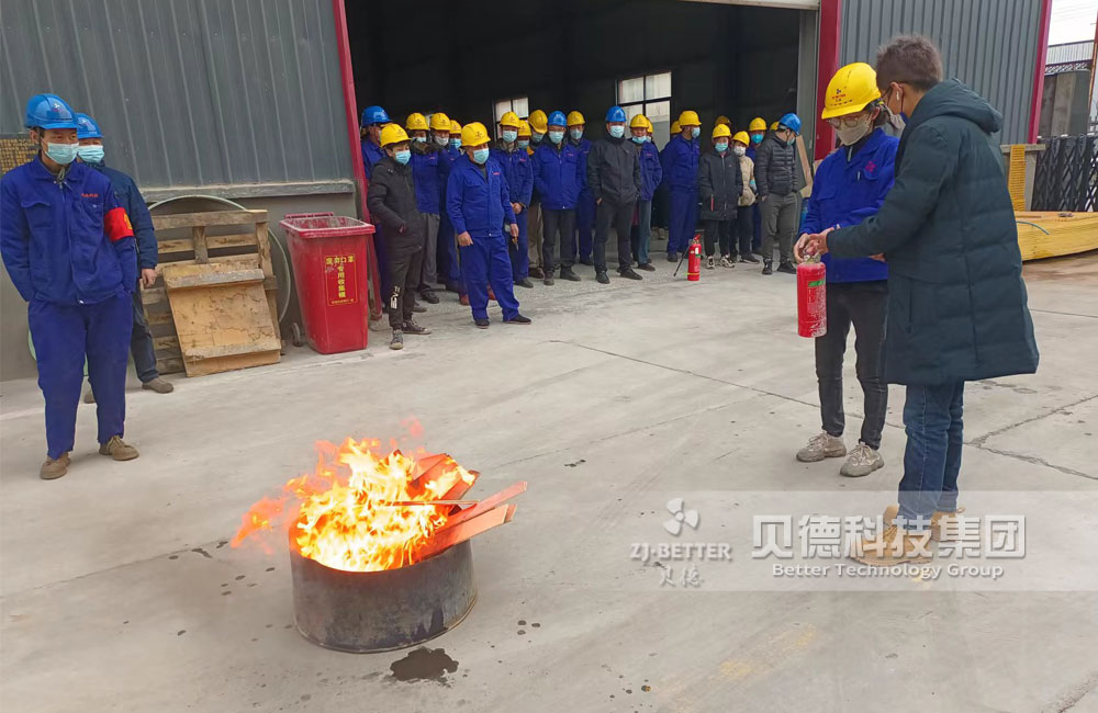 時值冬季,干燥寒冷,工廠企業(yè)用火、用電、用氣普遍增多,空氣中的濕度下降,物品含水量降低,遇火極易燃燒,火災(zāi)風險大幅增加。貝德科技集團時刻繃緊“防火”這根弦,邀請了衢州鑫安安全技術(shù)咨詢有限公司技術(shù)人員對廠區(qū)員工進行培訓(xùn),并開展了消防安全演練。