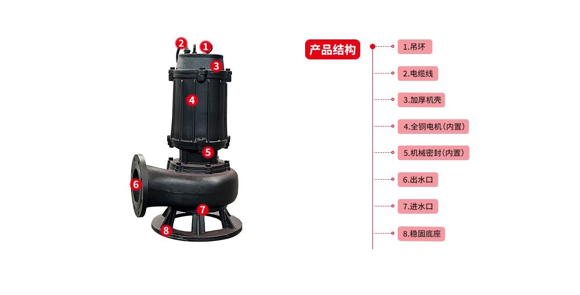 ·整體結構緊湊、體積小、噪聲小、節能效果顯著,檢修方便,無需建泵房,潛入水中即可工作,大大減少工程造價。