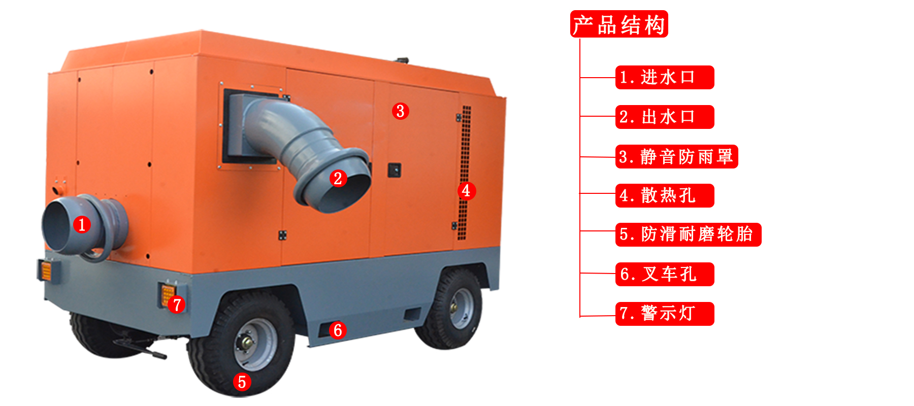 | 出水管每臺(套)配:藍(lán)水帶1卷,保爾快速接頭1套。 | ||