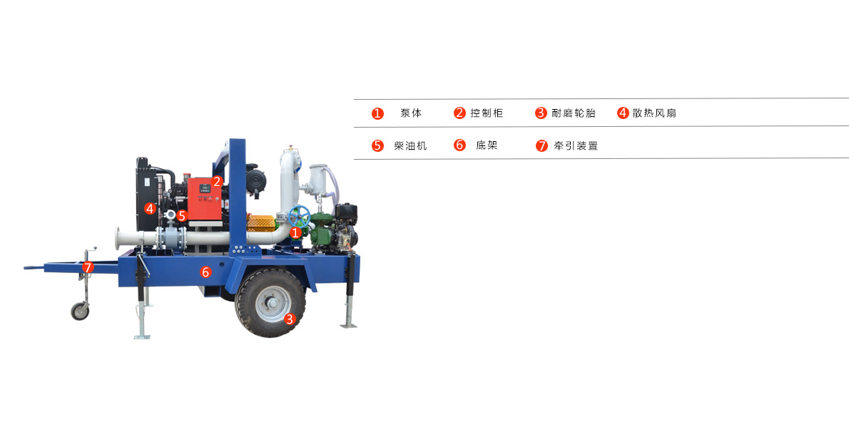 拖車式移動泵車集混流泵和無堵塞排污于一體,采用柴油機驅(qū)動軸向回流外混式,并通過泵體、葉輪流道的獨特設(shè)計,使用時不需要安裝底閥和灌引水。主要用于農(nóng)田灌溉、農(nóng)村灌溉、農(nóng)業(yè)灌溉、排水泵站、雨水泵泵站、排灌排澇、防洪防汛、防洪排澇、抗旱減災(zāi)等。